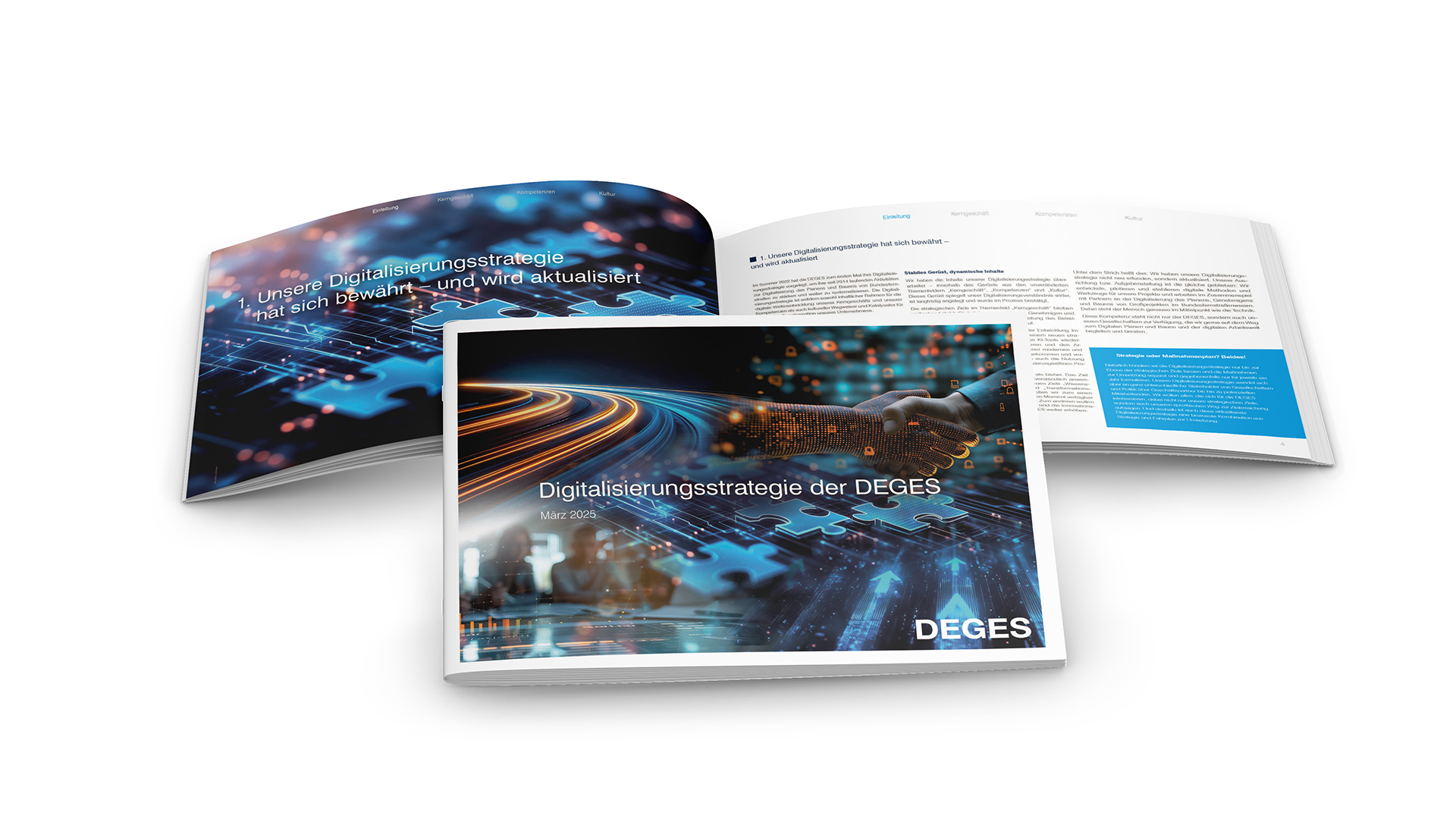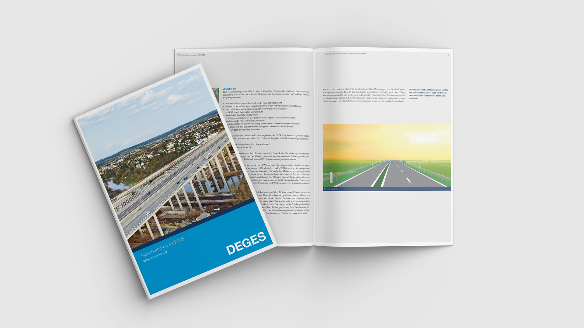 Den Grundstein für diese Zusammenarbeit legte bereits 2017 die Gestaltung des Geschäftsberichts – ein Projekt, das schnell zeigte, wie gut inhaltliche Tiefe und gestalterische Klarheit zusammen gehören. Seither begleiten wir die DEGES bei zahlreichen Publikationen und Sonderaufträgen und erfüllen damit den hohen Anspruch an Genauigkeit und Gestaltung.